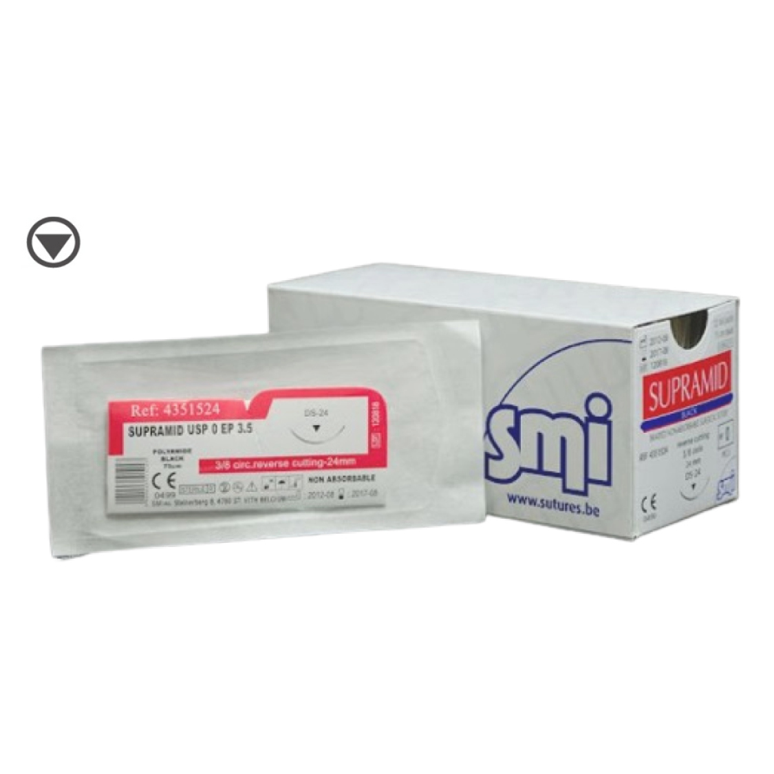 Sutura in Multifilamento ritorto e rivestito. Monofilo nelle misure 5/0 e 6/0. Fili di poliammide 6.6 racchiusi in un foglio di poliammide 6.