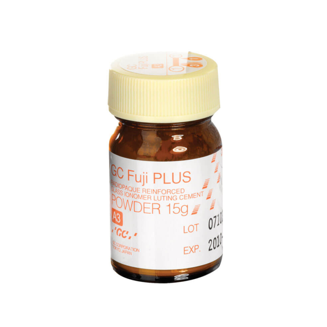 Cemento vetroionomerico rinforzato per fissaggio. Vantaggi: Cemento di fissaggio a polimerizzazione chimica rinforzato con resina, particolarmente facile da maneggiare. Non richiede acido mordenzante, né bonding e non si indurisce in assenza d’aria. Previo trattamento della cavità con Fuji Plus Conditioner. Alta biocompatibilità e forte adesione chimica alla struttura dentaria, metalli, compositi e ceramiche. Campo di applicazione: Cementazione definitiva di corone e ponti in metallo, metallo-ceramica, ceramica integrale, intarsi e onlay.