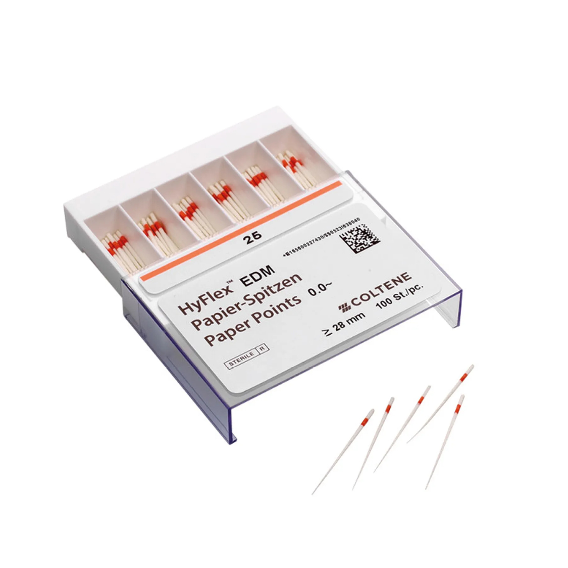 Punte di carta sterili altamente assorbenti e senza collanti. Flessibili ma stabili per un facile inserimento. Punta bianca, parte superiore colorata.