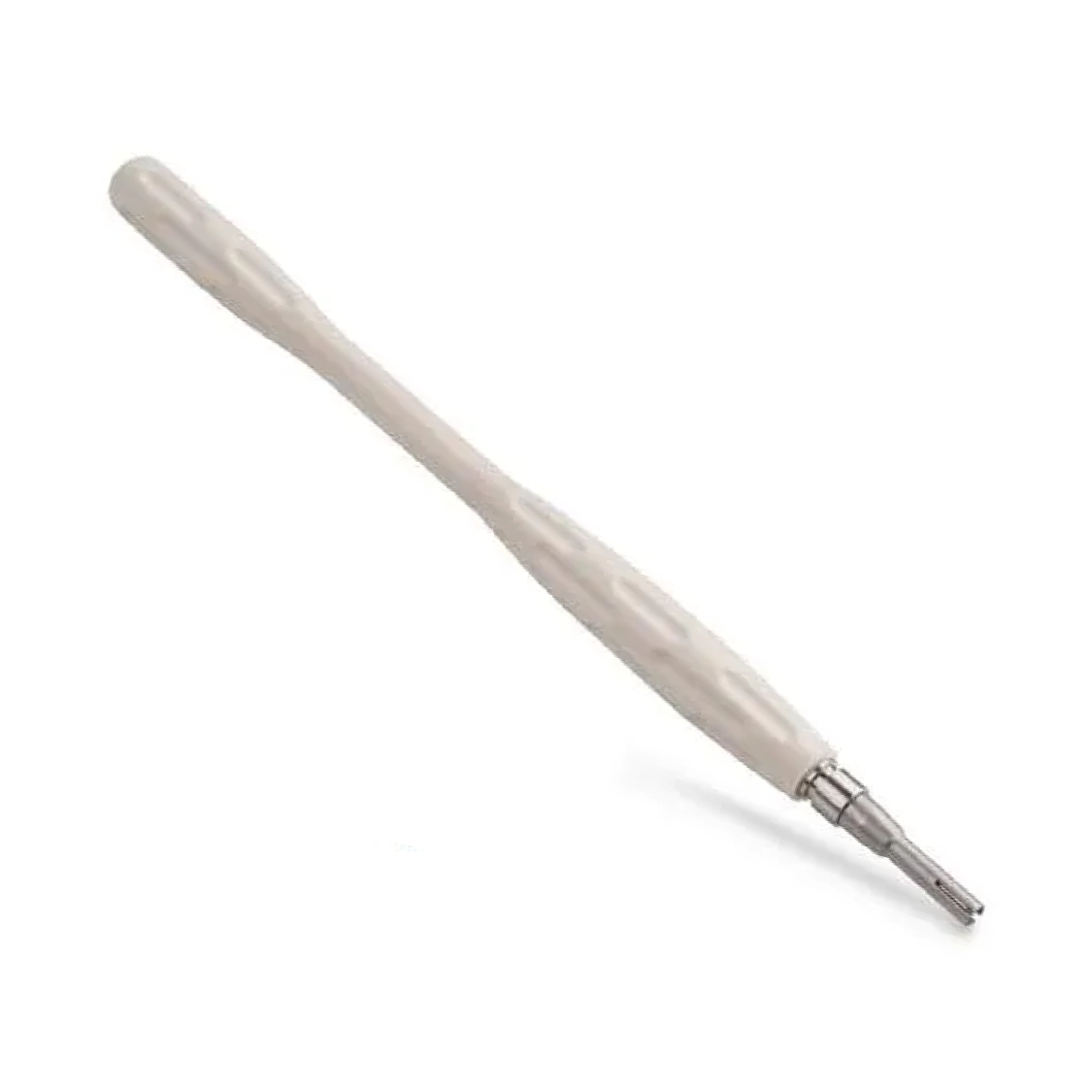 Il posizionatore è munito di una guida che stabilizza il chiodino migliorando la tenuta e la precisione in fase di applicazione; è dotato di un cappuccio protettivo che deve essere rimosso per consentire il prelievo del chiodino e che può essere utilizzato per completare l’inserimento in osso mediante battitura dello stesso, se necessario.