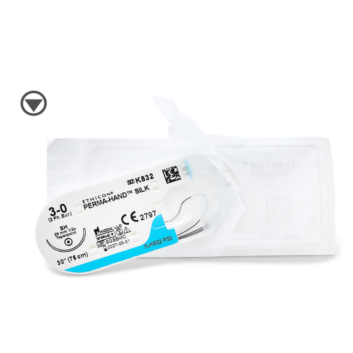 Fibra proteica non rivestita ricavata dai bozzoli del Bombix Mori. Il processo di decerazione rende questo materiale, oltre che maneggevole e di facile annodabilità, anche affidabile dal punto di vista della biocompatibilità e della non capillarità. Eccellente uniformità di calibro, elevata resistenza tensile (scompare in circa un anno) e atraumaticità nel passaggio attraverso i tessuti. Reazione tissutale moderata. Intrecciata nera: sutura naturale non assorbibile.