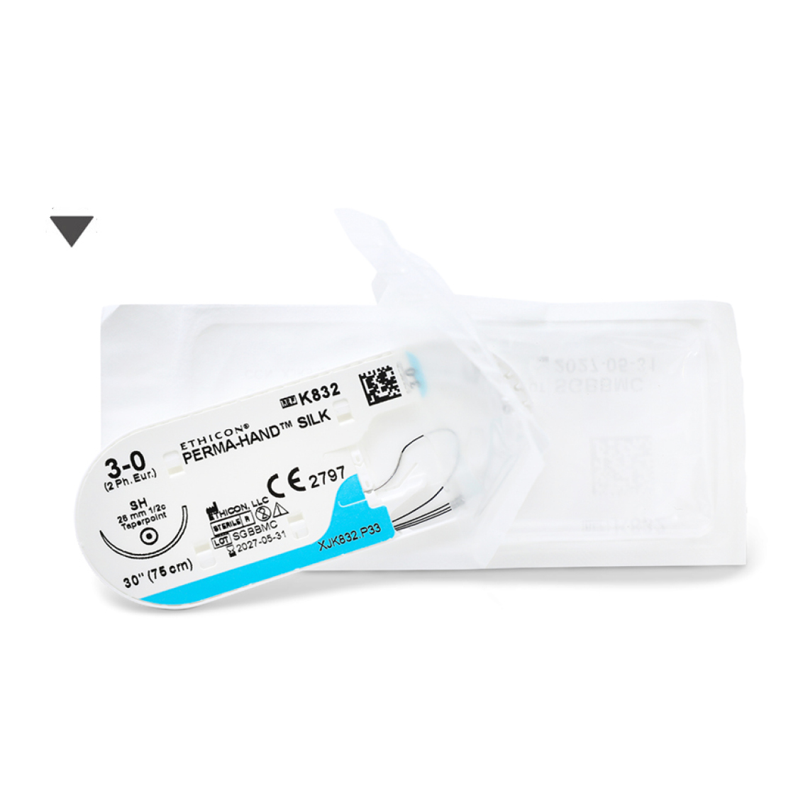 Fibra proteica non rivestita ricavata dai bozzoli del Bombix Mori. Il processo di decerazione rende questo materiale, oltre che maneggevole e di facile annodabilità, anche affidabile dal punto di vista della biocompatibilità e della non capillarità. Eccellente uniformità di calibro, elevata resistenza tensile (scompare in circa un anno) e atraumaticità nel passaggio attraverso i tessuti. Reazione tissutale moderata. Intrecciata nera: sutura naturale non assorbibile.