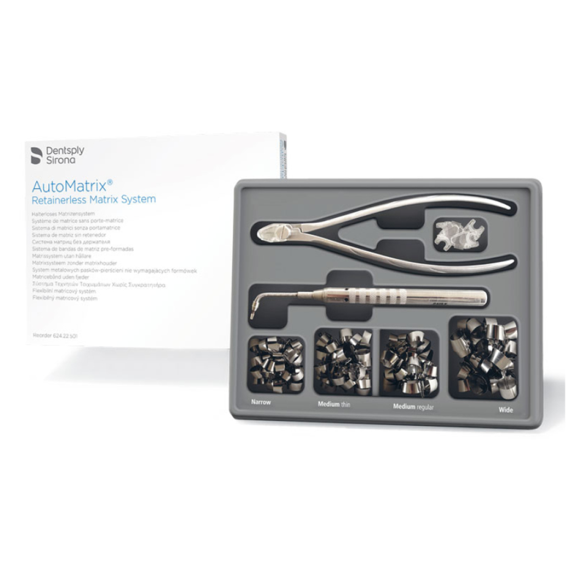 Il kit contiene il manico Automare III necessario per adattare la matrice al dente e i tronchesi necessari per togliere la matrice dal dente.