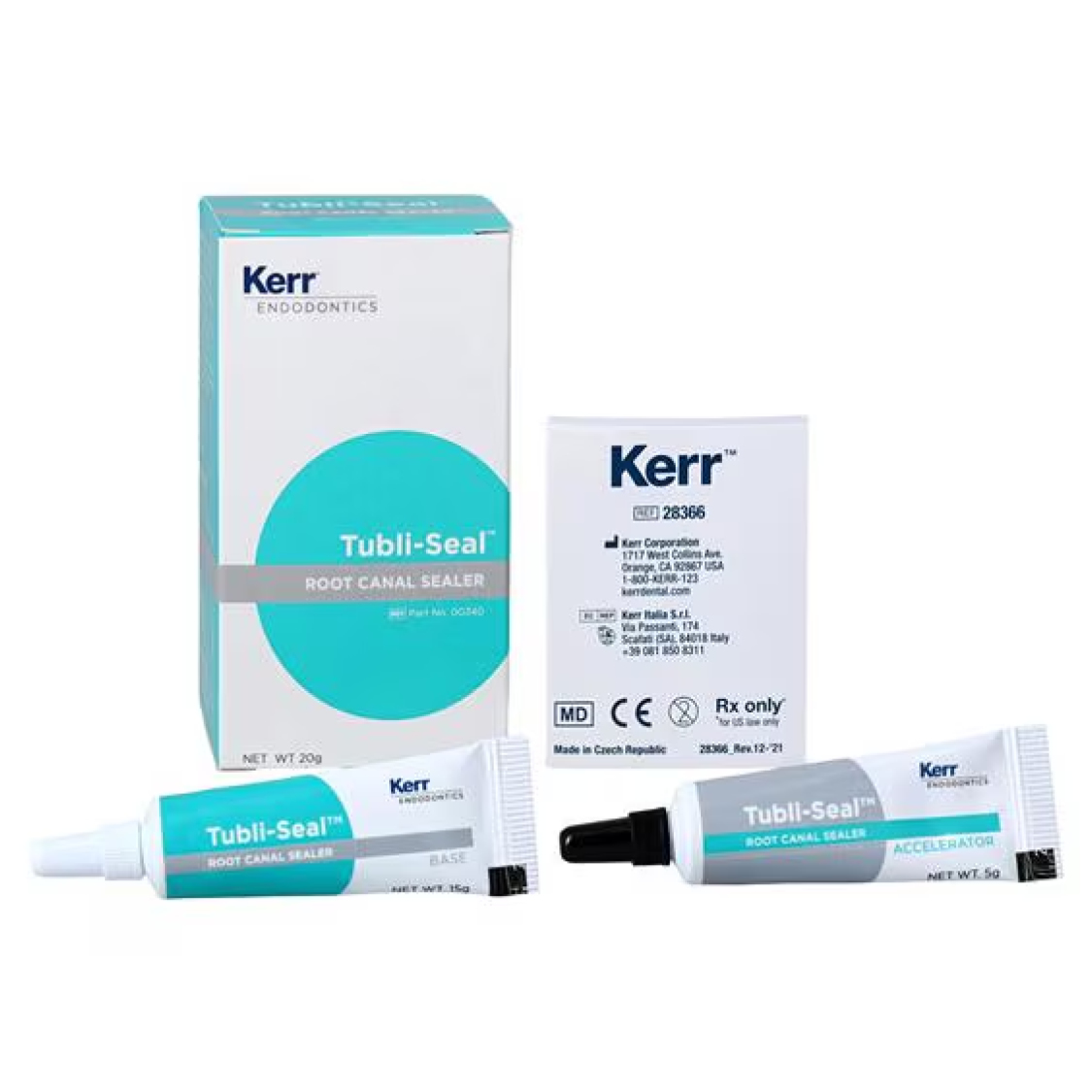 Tubli-Seal è un sigillante canalare in formulazione pasta/pasta a base di ossido di zinco-eugenolo. Presenza un colore chiaro, non si decolora ed è radiopaco. Tubli-Seal EWT offre tutti i vantaggi del Tubli-Seal con un maggiore tempo di lavorazione.