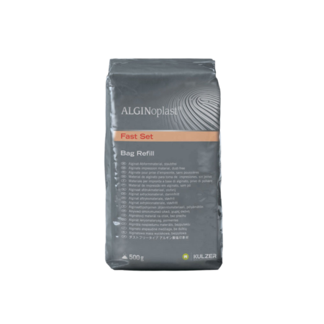 Alginato, a presa rapida, solido. Non fa polvere. Umidificazione molto rapida sin dall’inizio della miscelazione. Consistenza omogenea dell’impasto.