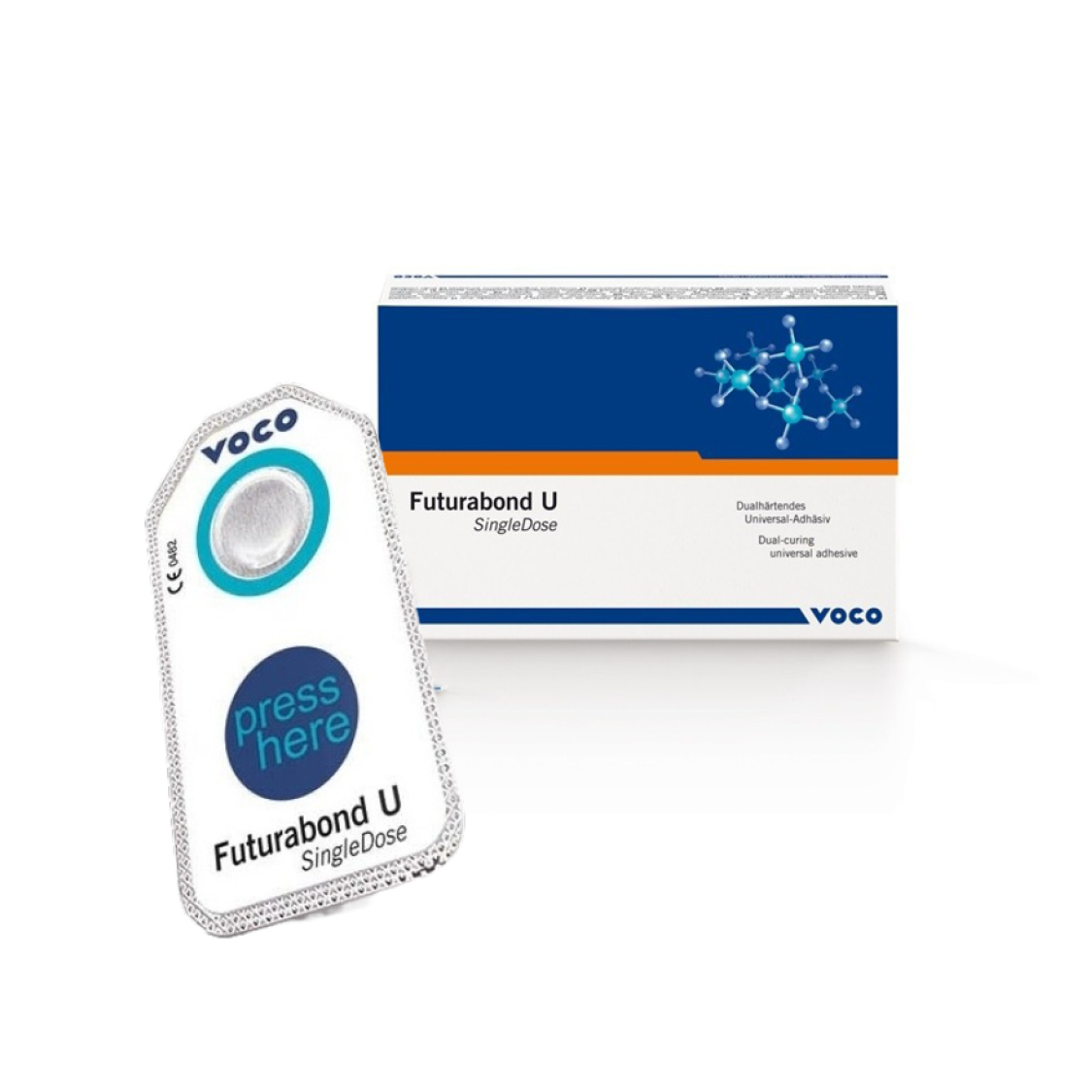 Futurabond U a polimerizzazione duale in SingleDose è un adesivo veramente universale in confezioni monouso. Automordenzatura, mordenzatura selettiva o mordenzatura della dentina: con Futurabond U, il dentista può scegliere liberamente, in base al singolo caso clinico e al modo preferito di operare, come condizionare il tessuto duro dentale. Applicato in un solo strato, Adesione sicura a vari materiali come metallo, ossido di zirconio, ossido di alluminio e ceramica Per restauri diretti e indiretti. Non è richiesto un ulteriore attivatore per la polimerizzazione duale. Il sistema SingleDose garantisce un lavoro semplice e veloce.