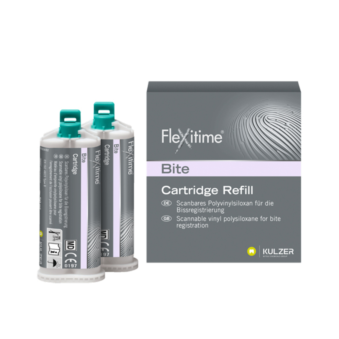 Silicone tissotropico con consistenza cremosa, durezza finale (Shore-D 40), per registrazioni occlusali standard e per registrazioni (senza uso di polvere) degli antagonisti nella tecnica CAD-CAM. Indurimento estremamente veloce (tempo di presa nel cavo orale 30”). Colore lavanda.