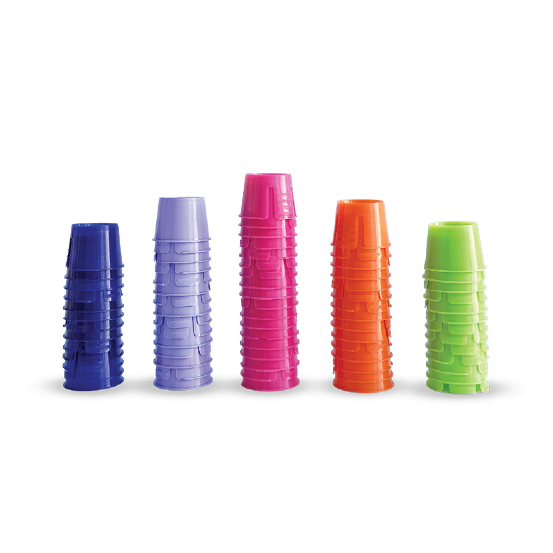 Bicchieri dappen usa e getta in plastica. Con scanalature per il fissaggio al vassoio e con una superficie striata, che garantisce una presa sicura e facile maneggio.