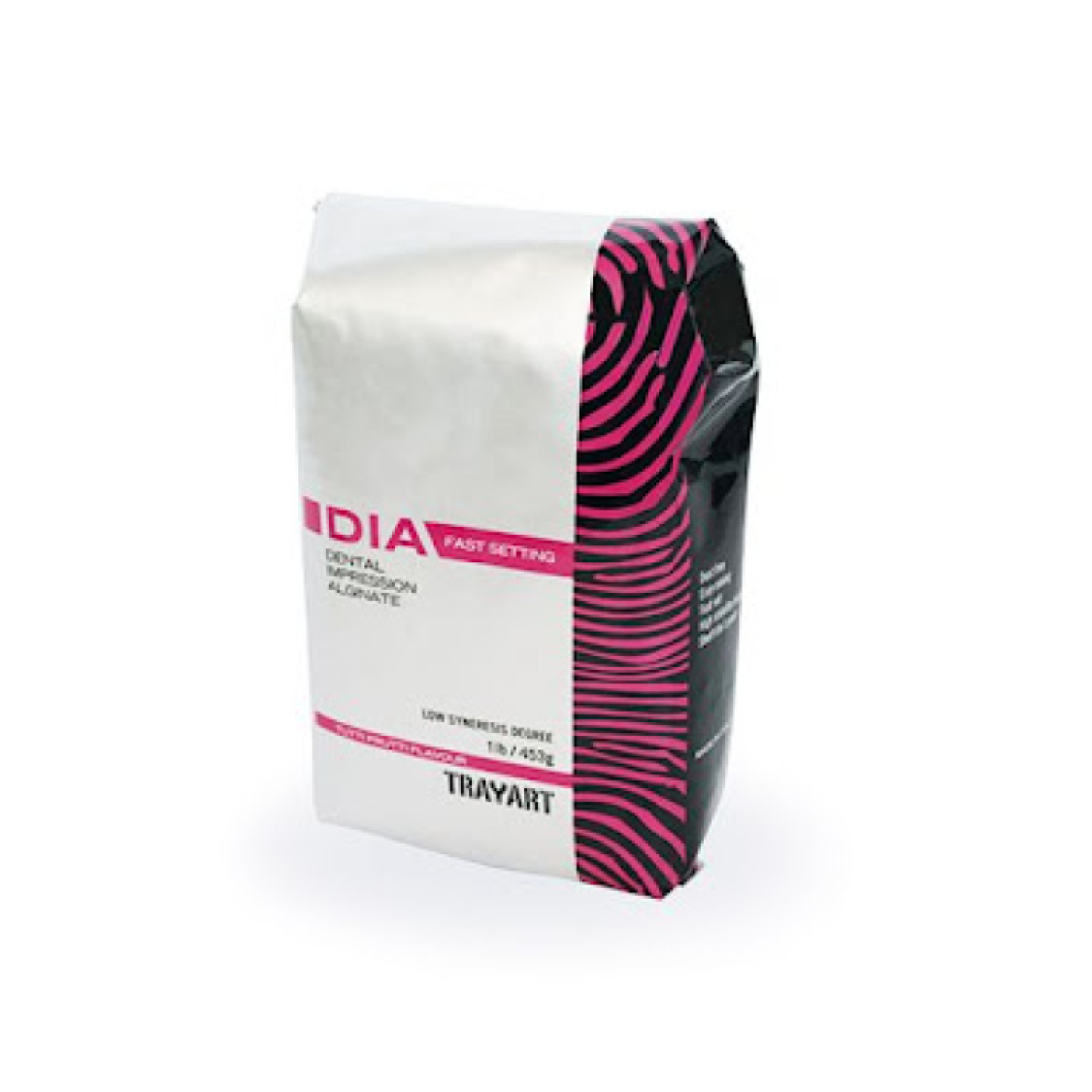 Alginato dust free ad elevata stabilità dimensionale, tempo di presa rapido, superiore stabilità dimensionale, non compressivo verso i tessuti molli, aroma “tutti frutti”.