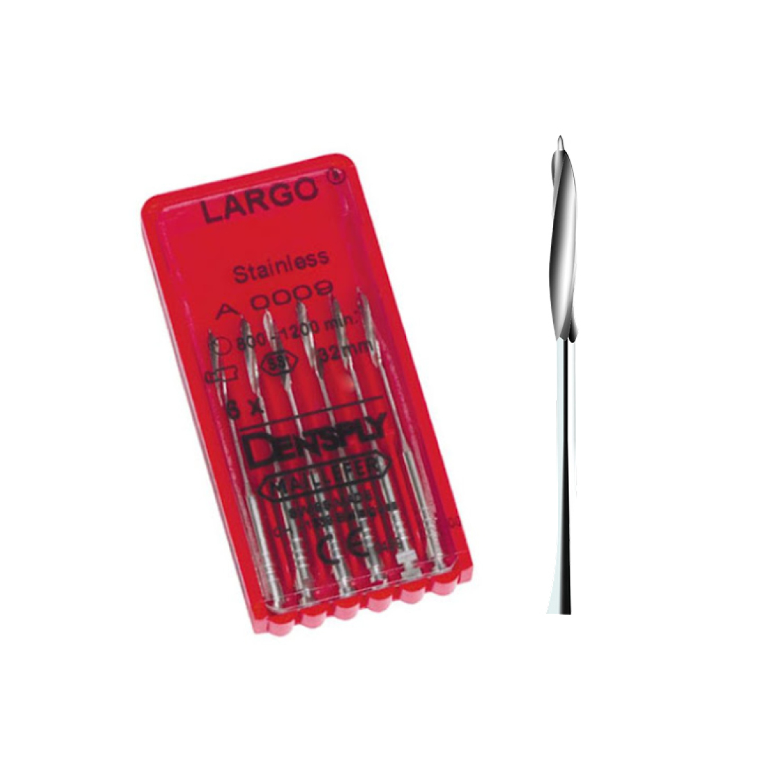 Fresa in acciaio inox studiata per la preparazione chimico-chirurgica ausiliaria delle cure canalari e utilizzata anche negli alveoli di ritenzione intracanalare.