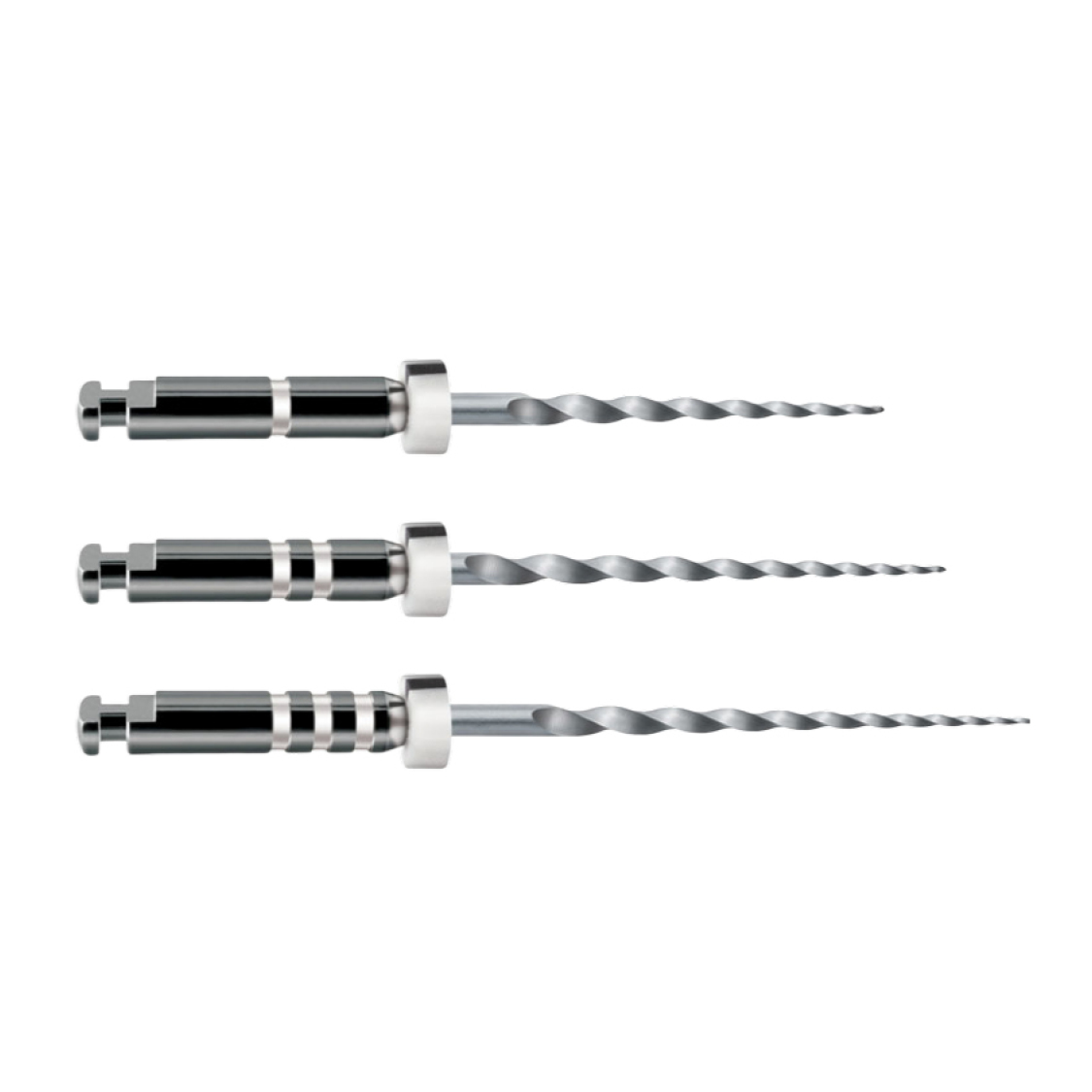Strumenti endodontici Ni-Ti specifici per una facile rimozione dell'otturazione.Tre lunghezze e tre conicità progressive per adattarsi alle tre parti del canale (terzo coronale, terzo medio, terzo apicale).