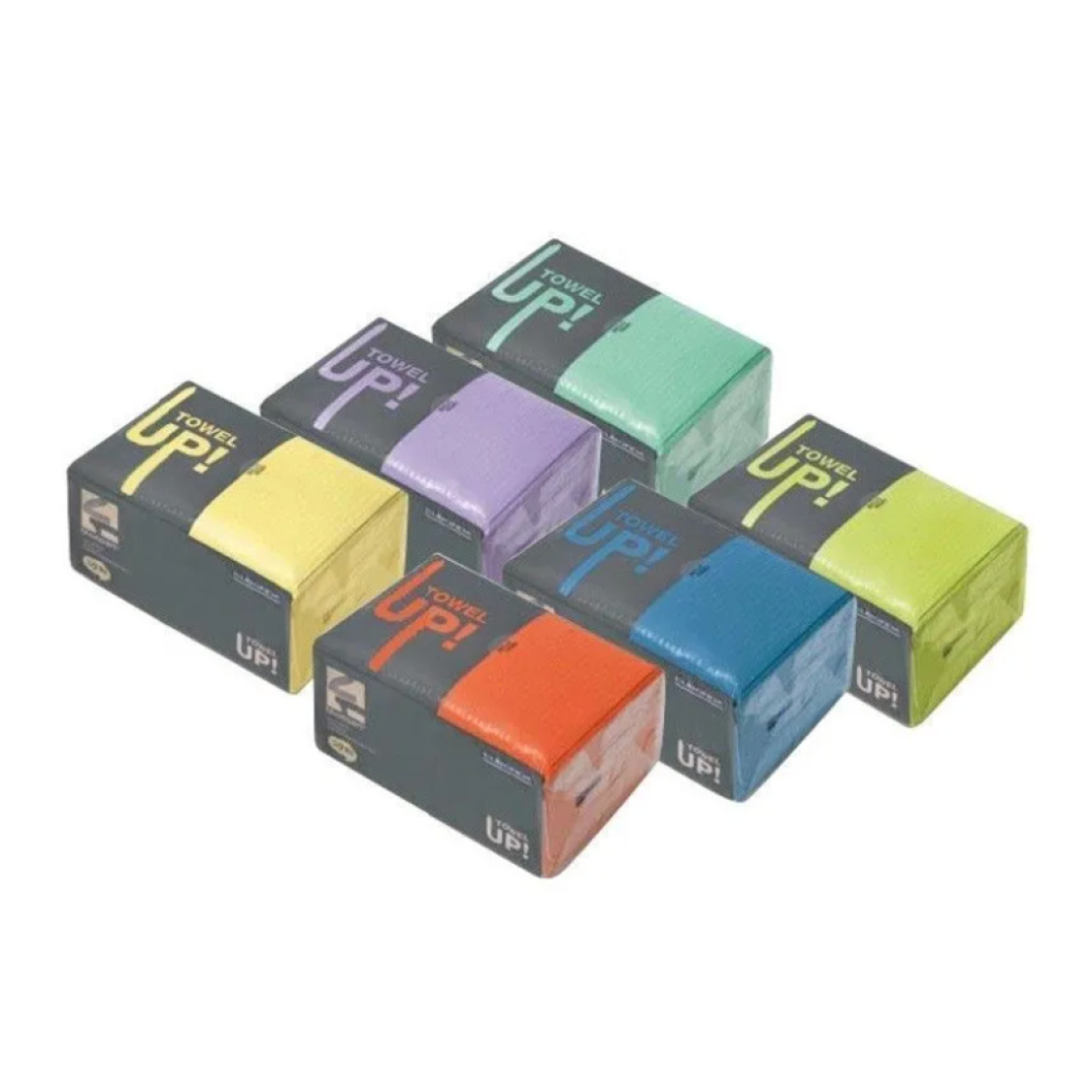 Le salviette monouso Monoart Towel Up! sono realizzate in pura ovatta di cellulosa altamente assorbente accoppiata e goffrata con film di polietilene impermeabile. Grazie all’innovativo packaging con sistema apri/chiudi, le salviette vengono mani- polate una alla volta e rimangono al riparo da polvere e contaminazioni per un’igie- ne massima e una grande praticità d’utilizzo. Dimensioni 330 x 450 mm. Dsiponi- bili nei colori: blu, blu laguna, smeraldo, arancione, lilla, verde, vinaccia, grigio, giallo.