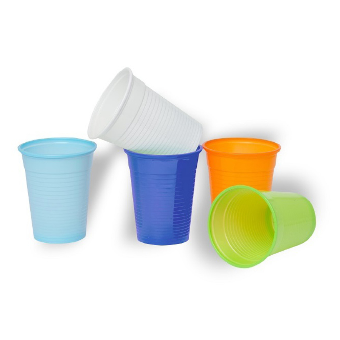 Bicchieri monouso in plastica con bordo arrotondato e capienza 180 cc.