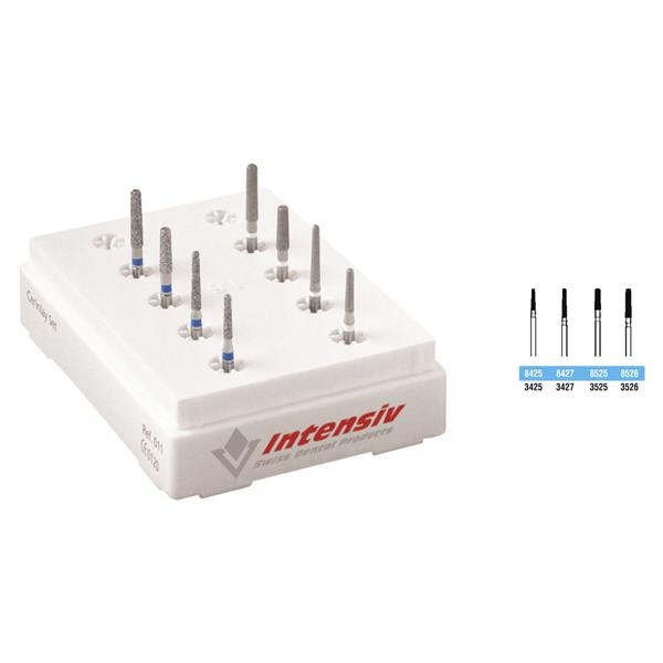 Set di 8 frese per la preparazione di cavità per intarsi in ceramica e resine composite - per turbina. University of Berlin - Prof. J. Roulet