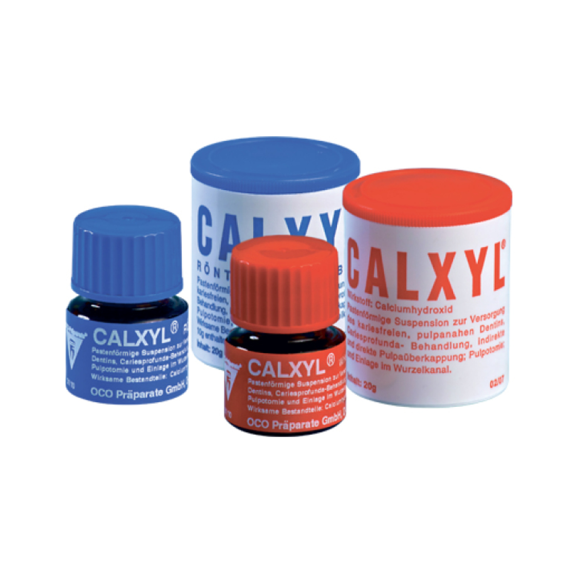 Cemento a base di idrossido di calcio, per sottofondi di cavità, radiopaco, per incappucciamenti diretti e indiretti della polpa e per medicazioni canalari.