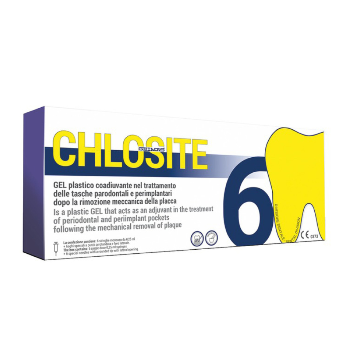 Nuovo gel plastico di xantano con clorexidina coadiuvante nel trattamento delle tasche parodontali e perimplantari dopo la rimozione meccanica della placca dalle tasche stesse.L’azione occludente e l’effetto umettante del gel, unitamente all’azione accessoria di due tipi di clorexidina, sfavoriscono la ricolonizzazione batterica; in tal modo l’organismo si troverà nelle condizioni migliori per instaurare il processo di guarigione. Può trovare utile applicazione nei casi di grave ed estesa parodontopatia cronica perché, grazie all’azione occludente del GEL, limita la ricolonizzazione delle tasche dopo strumentazione meccanica, nonché in corso di perimplantiti. CHLO-SITE può così proteggere meccanicamente per due settimane le tasche trattate favorendone la guarigione.