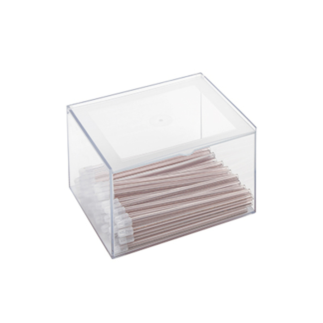 Dispenser di canule aspirasaliva con coperchio, plexiglass trasparente.