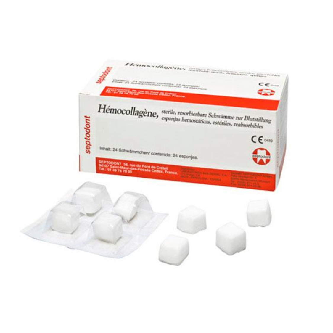Spugnette monouso con collagene di origine bovina. Utilizzate per emostasi locale a seguito di estrazioni o di interventi di chirurgia dentale.