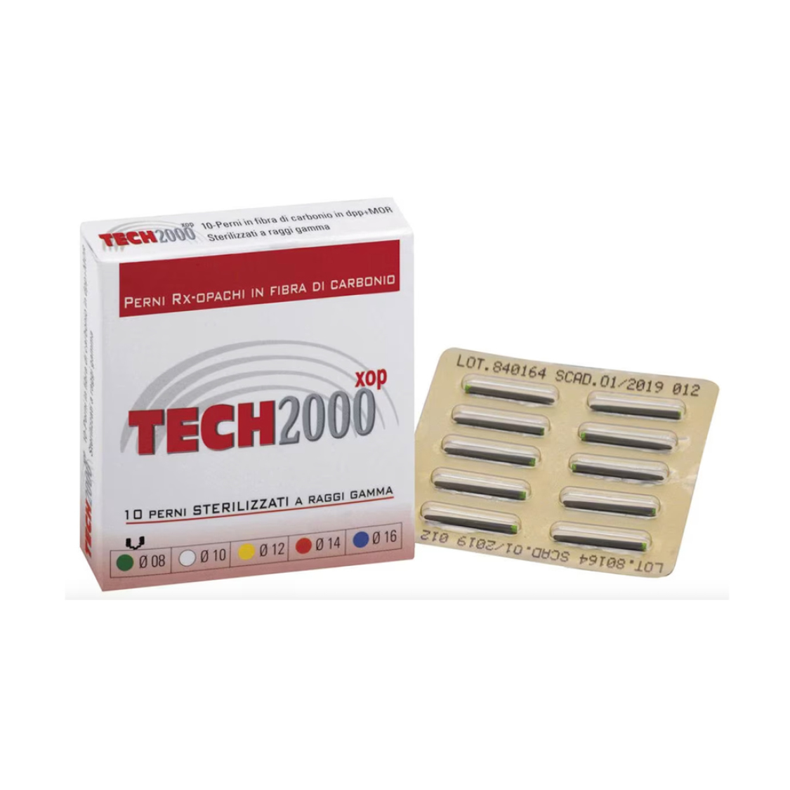 Perni in fibra di carbonio cilindro-conici ad elevata radiopacità. Indicati per la ricostruzione di denti trattati endodonticamente. Le fibre di carbonio, inglobate in una speciale miscela di resine trattate con adesivi a base di MDP, creano un forte legame con i materiali compositi da restauro e rispettivi adesivi. Questa caratteristica consente al perno di rendere più stabile la ricostruzione e di rinforzare le radici del dente rese fragili dal trattamento endodontico. Modulo di elasticità pari a quello della dentina. Confezionati singolarmente in blister e sterilizzati, garantiscono praticità d´uso, igiene e sicurezza. Disponibili in 5 diametri (08 - 10 - 12 - 14 - 16) codificati con colori diversi. Lunghezza 20mm.