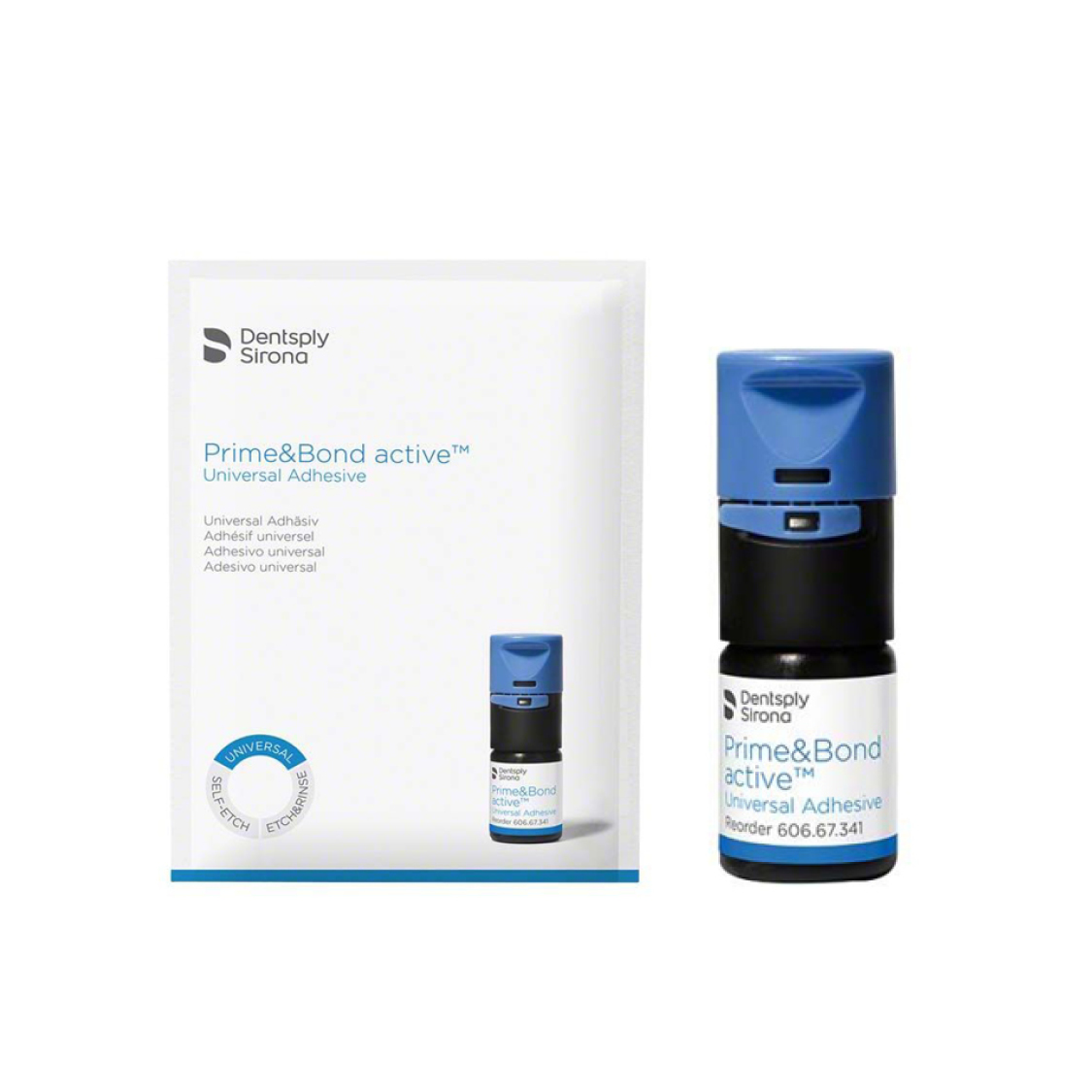 Prime Bond active introduce la nuova tecnologia brevettata Active-Guard. Adesivo universale con controllo attivo dell’umidità, supera la tensione superficiale dell’acqua e si disperde attraverso la dentina nei tubuli dentinali, formando uno strato uniforme ed omogeneo. Dopo l’asciugatura all’aria, il solvente e l’acqua evaporano insieme, lasciando un consistente strato di adesivo su tutta la superficie e assicurando così una forte adesione. Facile da usare. Risultati consistenti. Elevata adesione. Controllo attivo con Prime&Bond active.