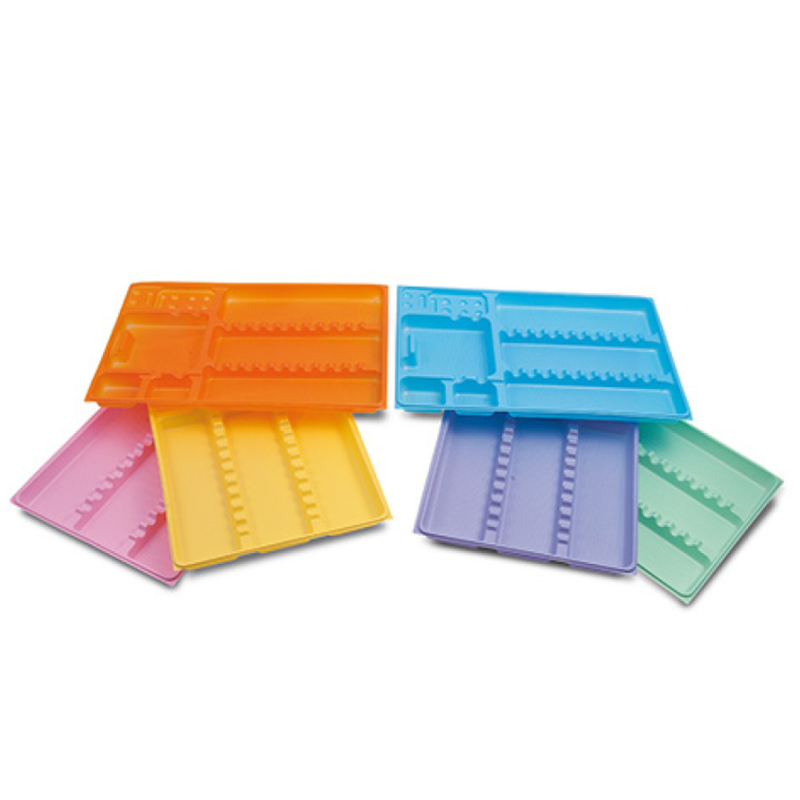 Vassoio monouso colore singolo, in plastica polistirolo colorata, fondo zigrinato per fornire la massima resistenza. Misure: 18 x 28 cm.