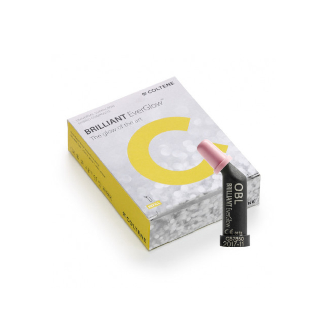 Ricambio in capsule di Brilliant EverGlow composito ibrido di ultima generazione, con granuli di dimensioni inferiori al micron, uso universale per una lucidatura molto semplice, e stabilità di lucentezza e colore notevole ed eccellente, ideale per il settore anteriore, buon rendimento nei posteriori. Disponibile su richiesta nelle tonalità opache e traslucide per stratificazione.