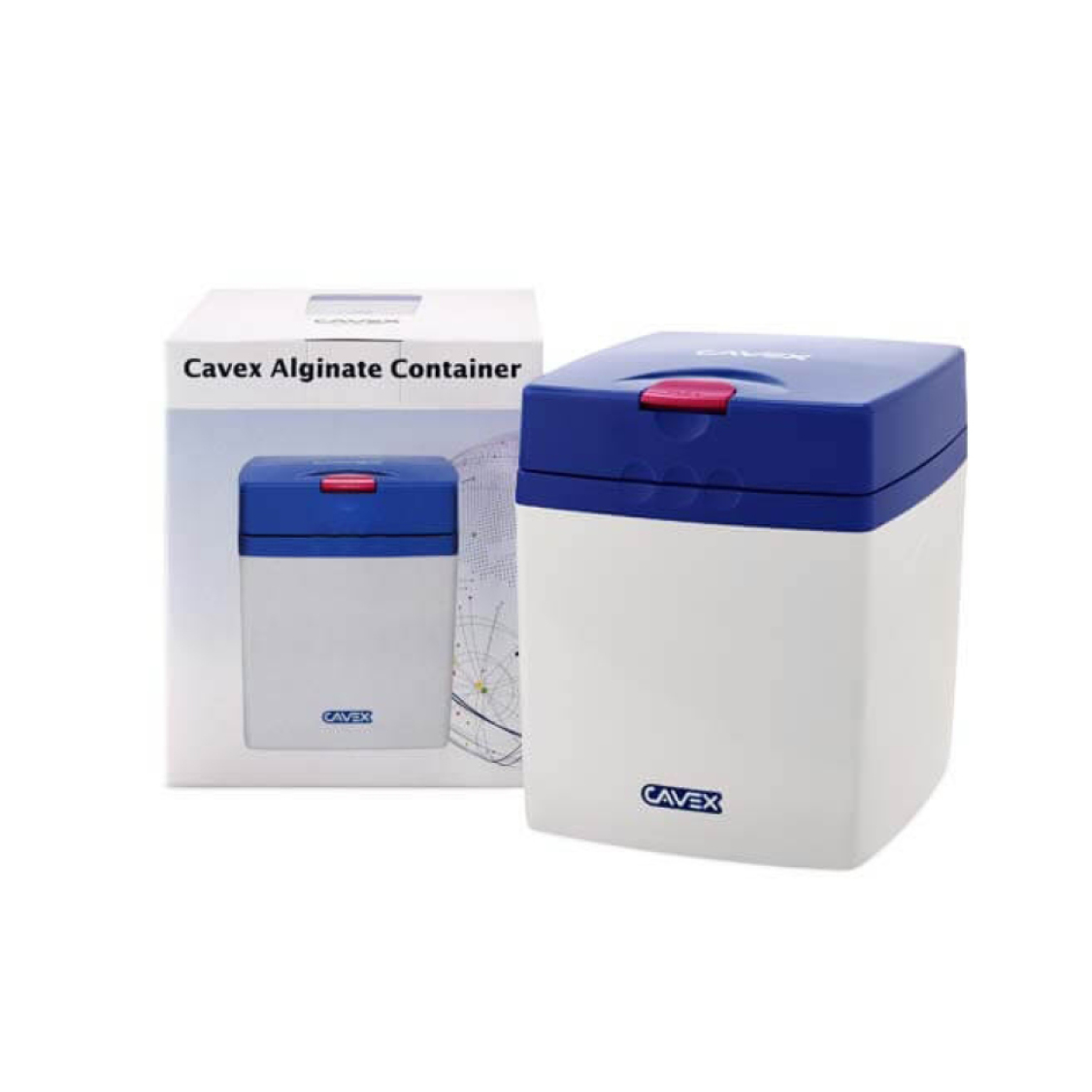 Contenitore per alginato con cucchiaio dosatore per una conservazione ottimale. Coperchio blu dalla facile apertura.