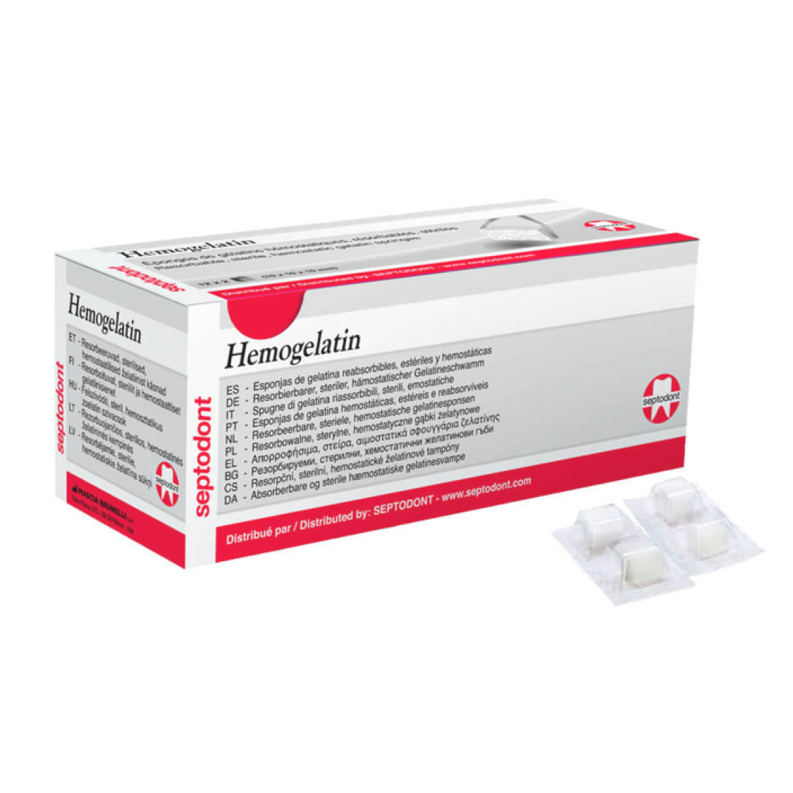 Spugna emostatica riassorbibile con collagene di origine suina.