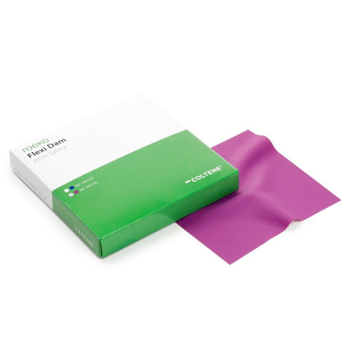 Diga dentale priva di lattice e senza talco. Estremamente resistente agli strappi, ha un rapporto estensibilità/rottura superiore al 1000%. Ottima da tenere in studio nei casi di pazienti allergici, rimane inalterata per 36 mesi.